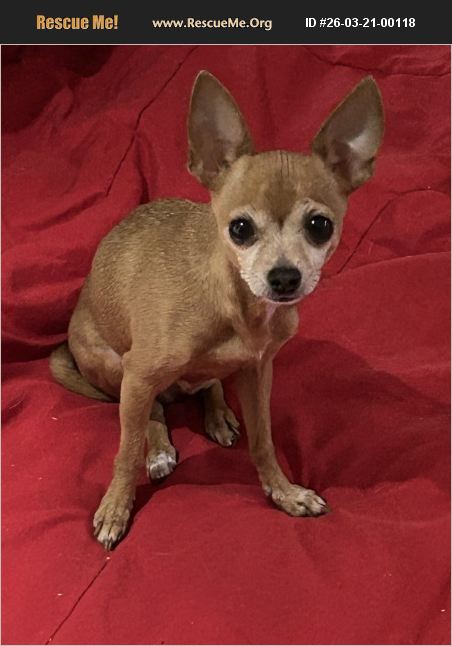 Tula is a senior, small, female, brown, chihuahua who weighs approximately six pounds. Our rescue saved her from a kill shelter. She may be around ten years old. She walks well on a leash, her eyes are good, and she is very alert and engaged. Tula has an abundance of life and love left. This little girl is shy at first, but quickly recognizes a loving human. Adoption fee $300