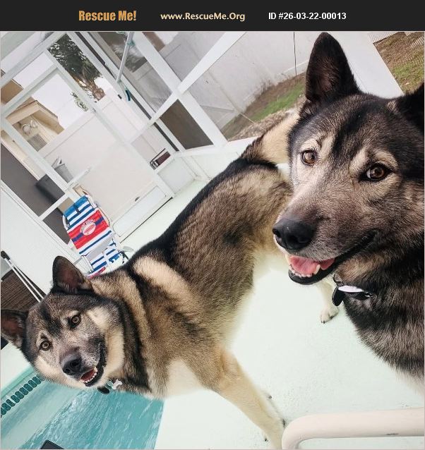 Hunter & Logan - Brother Elkhound/Husky Mix! Port Charlotte FL About Hunter: Hunter, born on October 10, 2017, is a protective and loving dog who has been with us since he was a puppy. He has a more independent demeanor, and lives up to his name. He tends to be much quieter and more of an observer/stoic boy. He is very bonded with his brother, Logan, and they have been together since they were reunited. Hunter has an alpha personality and is protective of Logan. Hunter loves affection but wont chase after it. He has a slightly more cream/golden sparkle in his fur, and weighs around 40-45 lbs. He is house-trained and will not go on furniture or beds with some guidance. (They are both quick learners, come,go,stay,sit,drop it, they wont go in certain rooms, can keep off rugs/furniture if you show them) Breed: Norwegian Elkhound Color: Gray/Silver/Salt & Pepper - with Gold/Cream highlights Age: 8 Years (Born 10/10/2017) Size: 40-45 lbs (Medium) Sex: Male Shots: Current Spayed/Neutered: No Housetrained: Yes Microchipped: Yes Personality: Affectionate, Observant, Playful, Protective Good With: Kids: Yes Dogs: Limited interaction, will assert dominance with larger dogs Cats: Unknown (they've never been around cats) About Logan: Logan, also born on October 10, 2017, is the complete opposite of his brother in terms of personality. While Hunter is more independent, Logan is a lover! He's affectionately dubbed 'aggressively cuddly' - if you start petting or hugging him, he'll keep coming back for more, nuzzling your hand for more tickles. If you let dogs sleep in your bed- you wont find a dog better than Logan to share a pillow with! Logan has a beautiful silver/gray coat and weighs about 40-45 lbs. He's also house-trained, and like Hunter, the both have the same training, though Logan is more of a talker - if there is a bunny or a bird around Logan will sound the alarm, where Hunter would stay quiet to get close. Its so fun to see their different personalities! Breed: Norwegian Elkhound Color: Gray/Silver/Salt & Pepper Age: 8 Years (Born 10/10/2017) Size: 40-45 lbs (Medium) Sex: Male Shots: Current Spayed/Neutered: No Housetrained: Yes Microchipped: Yes Personality: Affectionate, Snuggly, Chill, Friendly, Playful Good With: Kids: Yes Dogs: Yes (Fine with dogs of varying sizes) Cats: Unknown (they've never been around cats)