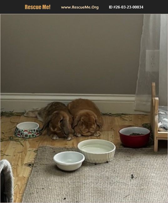 Bumblebee is a male lop about 3 years old. He is already bonded to a female named Fiona who is about 1 (the darker lop in the photo). Both of these bunnies are fixed and have a sweet temperament. They are currently free roam and are pretty good about using the litter boxes.