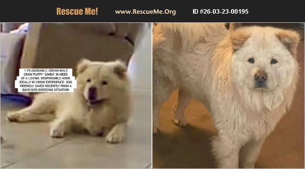 Courtesy Posting: GOODYEAR, AZ (NR PHOENIX)- 1 YR ADORABLE, CREAM MALE CHOW PUPPY 'SIMBA' IN NEED OF A LOVING, RESPONSIBLE HOME IDEALLY W/ CHOW EXPERIENCE- DOG FRIENDLY, SAVED RECENTLY FROM A BACKYARD BREEDING SITUATION Please help us find a loving, responsible home for adorable Simba, who appears to be purebred and we are told about 15 months old. His current foster owner saved him from a bad breeding situation recently, in hopes of finding him his forever home. Simba is described by his foster owner as 'He has been a gentle giant with my 5 year old female Chow Chow. My uncle and cousin came over the other day and he barked at them while they were here�'�|.while wagging his tail and allowing my uncle to pet him'. Prior to this, we understand Simba was living in a backyard breeding situation and was not getting along with the other unfixed male, which was likely due to an unfixed female also in the home. We therefore feel he will do best with the opposite sex. We have several nice videos of him enjoying being pet and playing with a new female chow friend. Additionally, his foster says, 'He does potty outside. We have mastered coming back in through the dog door and we are working on learning how to go out.' She is now his owner and not aware of any other behavior or medical issues. Simba now has an appointment to be neutered 4/2 and will be brought current on any routine shots needed. He will also be microchipped. A $250 rehoming fee is requested to help cover these expenses. If you are interested in applying for Simba, please contact [email protected] asap or Southern California Chow Chow Rescue Network who is assisting the foster owner with placement. Chow or dog experience is preferred. If you have another dog or pet, a meet and greet is strongly advised. Sorry, we do not normally do transport to private homes unless a rescue is involved, and or there are no risks in the home- and the adopter has access to safe transport, and can arrange this on their own. However, the foster may also be willing to meet an adopter part way if not too far. All adopters will be asked for a home check (which may be virtual), an application, pictures of past and current pets, a vet reference, and to sign an adoption contract. We will be posting more pictures and videos of Simba on facebook at: https://www.facebook.com/783968124/posts/10168730514183125/?mibextid=wwXIfr Note: to view the contents of link you will need to copy and paste it into your browser.