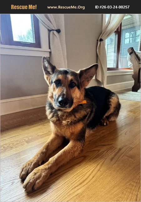 Dane is a very sweet, loving, and loyal GSD. He is 3 years old and currently lives in a home with another older female GSD. He is the alpha dog and dominates her, but he is not aggressive. We want to find him a good, loving home without young children. He has been very good with our young children, but in our family dynamic, he seems to favor adults. He appears nervous and uneasy when unfamiliar children are around. Dane has a high prey drive and is a working line dog. He is trained on an e-collar and he loves it. He loves to please and 'work'. He has alot of energy when he is outside and loves to run, but while inside he is a pretty calm and lazy dog. He requires more attention and 'work' than we are able to currently offer to him. He would be a great companion for a family without young children who can give him a great life!