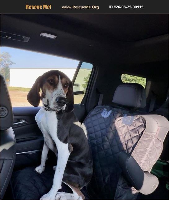 Shae, a Treeing Walker Coonhound who appears to be around two years old, was found abandoned in Bartow County in August 2024. When we discovered Shae, she was severely malnourished-skin and bones, infested with fleas, ticks, and roundworms. After taking her to the vet, we learned Shae was only about five months old at the time. Over the past year and a half, we have diligently maintained Shae's veterinary care, taught her basic commands, and successfully crate and house trained her. While Shae is a wonderful companion, her boundless energy has proven to be more than our family can manage. Shae truly needs a large, fenced yard to run freely, and consistent, vigorous exercise to curb her hunting instincts. Despite our commitment to participating in 'run clubs' twice a week, this routine falls short of meeting Shae's needs, and we are feeling overwhelmed. The situation reached a tipping point last week when Shae, eager to go outside, accidentally knocked me down in her excitement. Since this was not the first time this happened and I am currently seven months pregnant with our second child and Shae's inability to reliably follow commands poses additional concerns, we have made the difficult decision to surrender her.