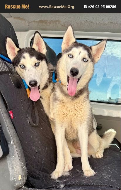 Anya (also called Stella) and Buddy are a playful young Husky duo estimated to be around 2-3 years old. These two share a special bond and truly bring out the best in each other. They love spending their days running, chasing, and play-wrestling together in classic Husky fashion. While they are very playful together, they are also comfortable doing their own thing when it's time to relax and often nap separately. Anya is the more talkative of the pair and loves to 'chat,' especially when she's excited to start the day or head outside. She's affectionate and enjoys being close to her humans when she's not playing with Buddy. Buddy is the goofy gentleman of the duo - a big, gentle goofball with a sweet personality. He's generally quieter but will let out an impressive Husky howl when he's excited about treats, playtime, or cool weather outside. Both dogs are very people-friendly and do well with adults and children. They enjoy toys, running outdoors, cuddling with their people, and especially playing together. Snow days are easily one of their favorite things! They have moderate to high Husky energy and will thrive in a home that can give them regular exercise and outdoor time. Because they have lived together and enjoy each other's companionship so much, they would do best adopted as a pair where they can continue their playful partnership. - Behavior & Training Summary Bond: Strongly bonded and very playful together. They enjoy each other's company but can be separated for short periods without distress. House trained: Mostly house trained. Occasional accidents have occurred but they generally do well in the home. Crate trained: Yes, both do well in crates. Leash walking: They can pull when excited during walks. Food motivation: Very food motivated, which can be helpful for training. Escape tendencies: Both attempted to escape initially. Buddy may still wander into neighboring yards if fencing allows gaps. Digging: Both enjoy digging and have created several holes in the yard. Fence behavior: Not fence jumpers. However, they may dig or push under chain link fencing if there are loose areas. Good with adults: Yes Good with children: Yes Good with other dogs: Generally yes. Anya can be selective with some female dogs but does well with males and smaller dogs. Good with cats: Unknown Energy level: Moderate to high energy typical of Huskies. Favorite activities: Running, playing together, toys, outdoor time, cuddling with people, and snow. The pair is currently being fostered in Avon, Indiana. They can be transported anywhere within the continental United States, where a loving family awaits to welcome the lovely pair!