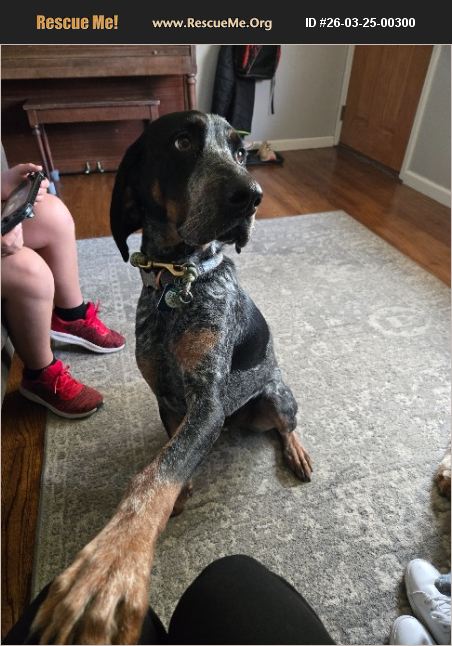 Sweet boy. Loves to chase small animals. Typical hound dog. Velcro dog inside, one track minded when pursuing what he thinks is prey.