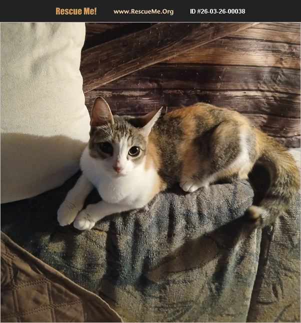 TinkerBell was found on the streets by my young granddaughter when community children were found abusing her and brought home by my granddaughter not owned.She had sustained a fractured or broken leg by the children or loose dogs in area and I had her seen by my vet,she did not need leg amputation or rehabilitation and no pain noticed in exam by the vet;She has a slight limp at times but does great and IN NO PAIN OR INJURY Thankfully..because she avoids all dogs and does not want conflict with them but will not go after them but will try to defend herself if they approach her but has gotten better in time I do not recommend a home with dogs however VERY SUBMISSIVE cat friendly or cat avoidance dogs may be approved.She must have a litterbox kept very clean as she has been known to rarely but occasionally use my puppies potty pad at the door if box is not cleaned well.She give TONS of 'High fives' with her paw..she taught it to ME!!! AND LOTS of kisses to your face,VERY AFFECTIONATE AND LOVING gentle personality.Because of her leg and unable to climb tree to defend herself she is an INDOOR ONLY CAT.I will spay her and rabies B4 able to go home or you can show me a set vet appt with prepayment receipt from your vets office to adopt her..She is aprox 2 yrs old..loves people and children; does not bite.Very deserving of her Forever home.Tehoming due to entering a assisted living home due to chronic illness.