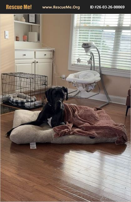 River is a black, female Great Dane who is very sweet. She can have moments of high energy but she also loves taking naps especially if it's in your lap. She has so much love to give and would benefit from a yard to play in.