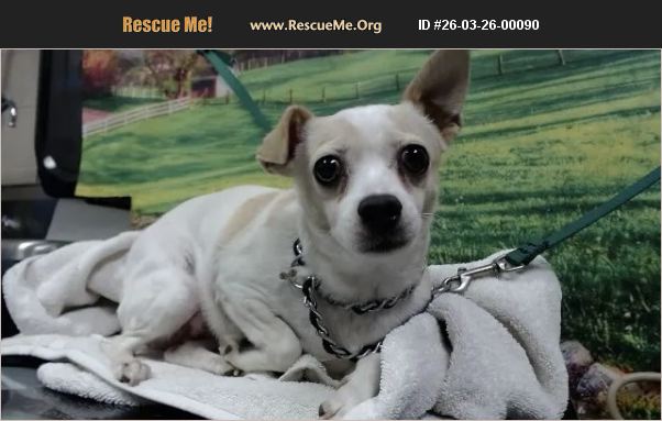 ID#A549863 I am described as a female, white and tan Chihuahua - Smooth Coated mix. The shelter thinks I am about 5 years old. I weigh approximately 10.90 lbs. I have been at the shelter since Mar 25, 2026 and I may be available for adoption on Apr 04, 2026 at 3:12PM.