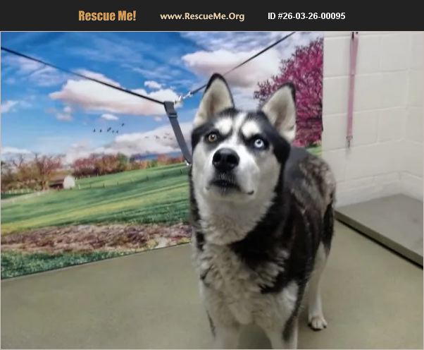 ID#A549844 I am described as a male, black and white Siberian Husky mix. The shelter thinks I am about 3 years old. I weigh approximately 69.00 lbs. I have been at the shelter since Mar 25, 2026 and I may be available for adoption on Apr 02, 2026 at 12:30PM.