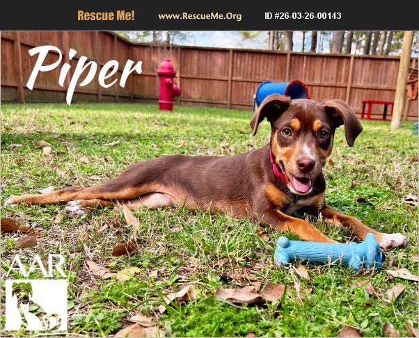Piper is a beauty with gorgeous eyes and a stunning coat that always catches attention. While her exact breed may be a mystery, her delightful and loving personality is crystal clear. She's the perfect size-not too little and not too big-making her a wonderful fit for many homes. Piper previously lived in a loving household with both cats and dogs and did well sharing her space with them. Unfortunately, when family circumstances changed, her people realized they could no longer give a growing puppy the time and attention she deserves. Now Piper is ready for a fresh start with a family who will appreciate her sweet nature and give her the love, guidance, and fun every puppy needs. With her beauty and affectionate personality, Piper is sure to bring joy and companionship to the lucky home that welcomes her. ��%90%BE DOB; 12/2/25 Weight: 15 lbs.and growing! AAR does not transport for adoption.