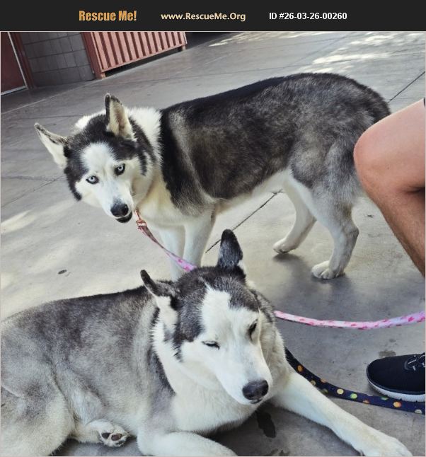 I have had them both for about 3 years now and have noticed they shown signs of abuse and my current situation will emotionally hurt them as I am not stable anymore. They are both siblings from same litter and are great companions I want nothing but the best for them both. Glacier is female (neutered) and Kodiak is male (spayed) both did great at dog parks! Please take them both as they get separation anxiety. They ate kinda quiet huskies