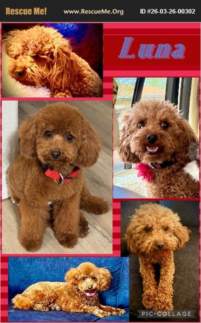 This gorgeous red miniature poodle is an absolute love bug! She is a little shy until she gets to feeling comfortable, but then she becomes a little Velcro dog! Luna needs a little more work on her potty training, but has mastered the doggy door at her Foster's house. She loves to sleep in bed with her human and put her head on their neck to cuddle. This sweet little girl does have a bit of separation anxiety and would do best in a home where someone is often home and/or with another small dog to keep her company. Luna travels really well and knows how to walk on a leash. If you think she might be a good fit for you, please email us for an application. Her adoption fee includes her spay, Microchip,Rabies and Parvo shot as well as her Bordetella vaccination. She will also go to her new home with some of the food she is currently eating, a collar, leash, harness and her favorite bed or blanket. * Application, homecheck and contract required *Please be advised we do not adopt further than a 100 mile radius of our location in Lake Havasu City Az due to requiring a homecheck and in case you and her are not a good fit.
