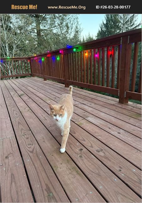 we're a foster home because the shelters are full and we need to URGENTLY adopt him out.. he's Extremely well tempered, super cuddly, talkative, loves being inside, knows how to use litter box, super cute orange and white cat, green eyes.. he always wants to be on your lap and always wants to be around you.. he wants to climb into your arms even if he just met you.. email [email protected]
