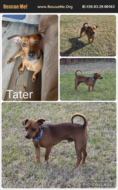 Meet Tater the Turd! Yes�'�| he earned that name honestly. But once you meet him, you'll quickly realize this little guy is more lovable rascal than troublemaker. Tater is a 3.5-year-old Dachshund/Chihuahua mix weighing about 16 pounds. He's the perfect mix of playful and laid-back. While he enjoys running around the yard with other dogs, he's not much of a toy guy - he'd much rather curl up on the couch and relax with his people. Tater is crate trained, potty trained, and learning to walk nicely on a leash. He rides well in the car but prefers to sit close to someone so he can feel safe and secure. Because Tater can be a little nervous in new environments, he will need a secure privacy fence. A chain-link fence likely wouldn't be the best option, as he has been known to try to make a great escape if he gets scared (hence the name!). The good news is that in the right home, Tater settles in nicely. He is good with other dogs and does well with kids, and he really enjoys having dog friends to run around the yard with. Tater is also very food motivated, which makes him a great candidate for continued training and bonding time with his new family. If you're looking for a fun little character with a goofy personality and a love for couch time, Tater might just be your perfect match. Adoption Info: All of our animals are fully vetted, which includes spay/ neuter, up to date on vaccines, wormed, heartworm tested and treated if necessary, up to date on flea/tick/heartworm prevention, and microchipped prior to adoption. Our requirements are non-negotiable and include the following: All current pets in the home must be spayed or neutered if over 6 months of age, unless there is a documented medical exemption with veterinary confirmation. All current dogs must be up to date on Rabies and Distemper/Parvo (DHPP) vaccinations. All current dogs must be on consistent, consecutive heartworm prevention. Past dogs listed on the application must also show a consecutive history of heartworm prevention. To start the adoption process, please fill out our application here: - https://www.shelterluv.com/matchme/adopt/WAG/Dog Please also take a moment to read our requirements located in the application. Please note: The dog you're applying for might already have a meet-and-greet scheduled, be on a trial with another family, or has been offered to another rescue within our network Don't worry though - we're always happy to help you find another great match if that happens! Our goal is to make sure every pup ends up in the best home for their needs (and yours too!).