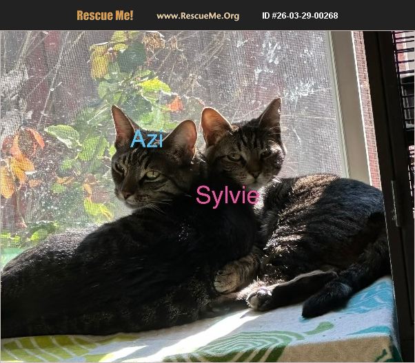Aziraphale, or Azi for short, is truly an angel! He can be very shy, but once he's warmed up to someone, his favorite thing in the world is to be petted. He has the loudest purr ever! Sylvie is also rather shy, but once she feels comfortable she is definitely a Velcro Cat! She always wants to see what you are doing and loves attention. They have been fostered by us since they were quite young, but due to unforeseen circumstances on our end we were unable to secure a home for them at that time. Now, we want to make sure they can find their forever home! We are looking for someone who can adopt them together. As you can see from the pictures, they love to cuddle together!