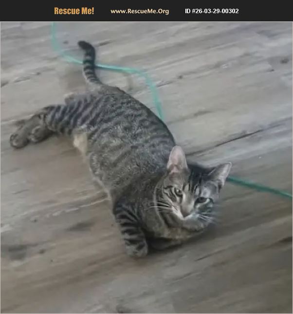 Jimbo is a gray tabby cat short hair (like silk) who is about 4 years old. He is adventurous! Curious, playful, funny little guy but shy at first. Food motivated. apply online at audrainhumanesociety.org updated 03/29