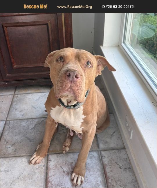 Lola is a sweet, senior brown pitbull with a gentle heart and a loving spirit. She may be in her golden years, but she still has so much love to give and enjoys the simple joys of life-short walks, cozy naps, and being close to her people. She has a calm and affectionate personality, making her a wonderful companion for someone looking for a loyal, easygoing friend. Lola loves attention and will happily spend her days by your side, whether you're relaxing at home or enjoying a quiet afternoon together. As a senior girl, she may need a little extra care and patience, but she will reward you with unconditional love and devotion. She would do best in a peaceful, loving home where she can feel safe and truly cherished. If you're ready to open your heart to a deserving dog, Lola is ready to fill your home with love �%9D%A4��%8F