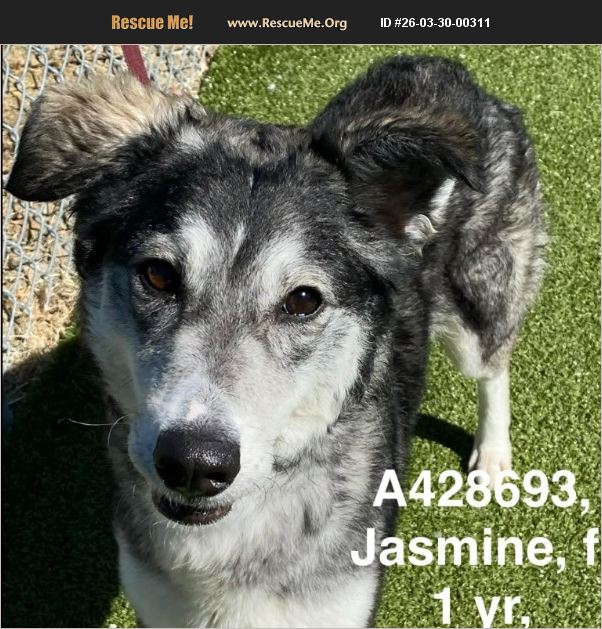 * 1 year old petite Husky mix * not spayed yet but she will be * heartworm negative * brought in as stray * greets you with tail wags - she loves to see visitors *quiet, calm, and well behaved in and outside of her kennel * easy going, walks great on leash and follows your lead * full of tail wags; a super happy dog * attentive, eager to please * she's a lovebug * gentle treat taker * best girl - happy, friendly, social, and well mannered Jasmine is a sweet beauty who you can;t hel but love. She has the softest fur and she enjoys all your pets and attention. Her tail never stops wagging and her soft brown eyes long for love. She is well behaved and wants to please. Jasmine is an all around great dog. If you are looking for your next furry family member, please consider adopting sweet Jasmine. She would love to go home with you! The shelter is full! Can you give sweet Jasmine a home, shes the best?