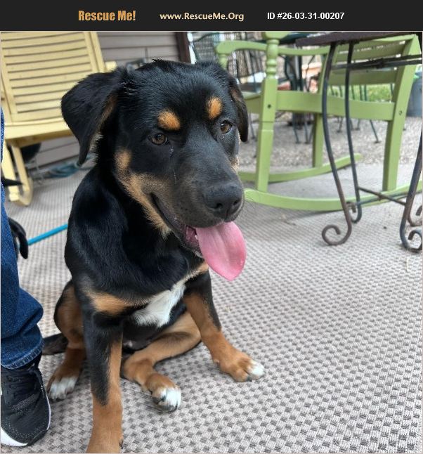 Black with Rottweiler-like brown facial markings, brown legs and white on chest and toes