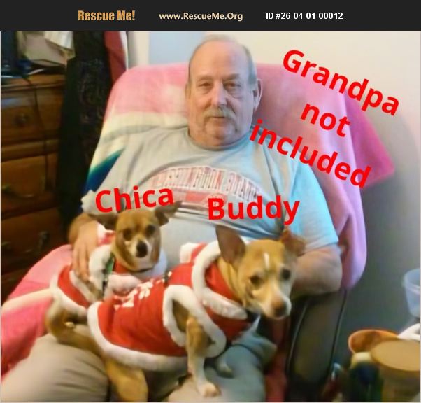 I rescued Chica when she was 5-6 in 2013 I had rescued Buddy the year before. They have been together since. The foster situation they have been in is over and I don't think they will do well without each other. I am hoping to find one home for yhrm together. She will be anxious but overall she is a good girl. To be honest they mostly curl up together and sleep. She loves the outdoors and sunshine. She is leash trained and house trained being 18 she does have some accidents. It is breaking my heart to not have them with me and all I want is for thrm to br happy and enjoy their time left.