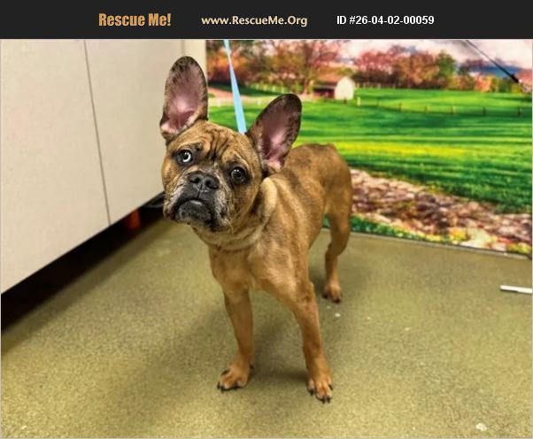 ID#A549993 I am described as a male, brown merle French Bulldog mix. The shelter thinks I am about 5 years old. I weigh approximately 19.50 lbs. I have been at the shelter since Apr 01, 2026 and I may be available for adoption on Apr 08, 2026 at 5:33PM.