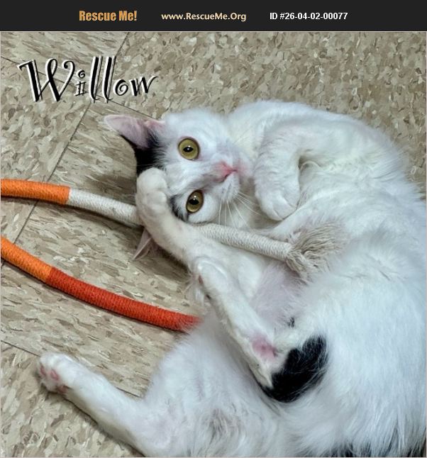 At around 3 years old, Willow is the perfect blend of playful energy and cozy companionship. This beautiful girl is sure to steal your heart-especially with her gorgeous fluffy tail that adds to her charm and elegance. Willow has a sweet, gentle nature and absolutely loves to cuddle up with her favorite humans. Whether she's chasing after a toy or curling up beside you for some quiet time, she's happiest when she's sharing love and affection. Her playful spirit keeps things fun, while her cuddly side makes every day feel a little warmer. If you're looking for a loving, well-rounded companion who can bring both joy and comfort into your home, Willow is ready to be your new best friend
