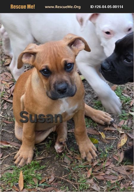 Meet Susan, a gentle and friendly puppy with a heart full of love. Her curious nature makes her an excellent companion for explorations around the house or peaceful walks in the park. Despite her shy demeanor, Susan quickly warms up to new friends, showing her sweet and cuddly side. She's perfectly mellow, making her a great fit for families seeking a calm and loving pet. Susan's tender personality and eagerness to please make her the ideal addition to any home looking for a loyal and affectionate friend. Susan started out pretty rough has already had hip surgery from an unknown injury. She is healing fine and if you didn't know you couldn't tell.