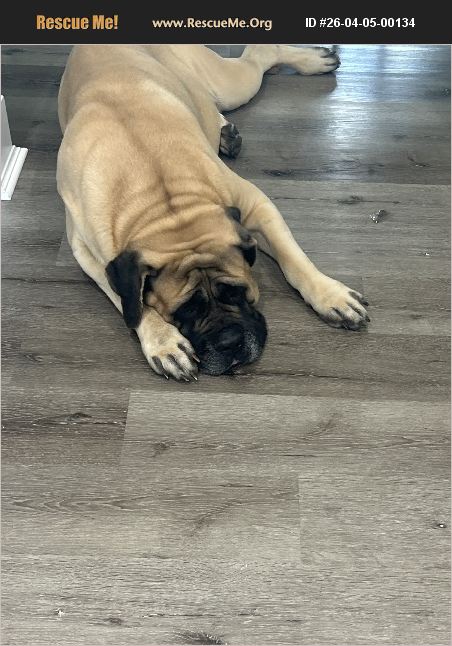 6 year old English Mastiff approximately 200 pounds. He is a good boy. He does need his ear cleaned often. Only reason we are looking re-home him, is we do a lot of last minute traveling ever since I was diagnosed with cancer last year. He will come with his food bowls and whatever food we have of course.