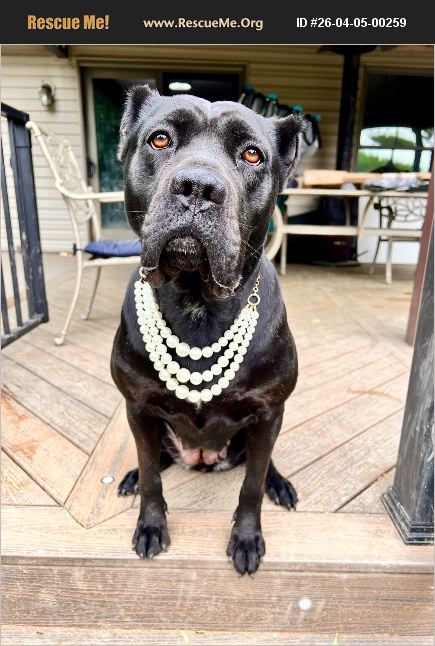 Mia is a 5-year-old Cane Corso in need of a new home due to no fault of her own. She enjoys a fenced yard, but is great on a leash and has all basic commands. She is fixed, crate trained and house broke. Mia enjoys cuddles on the couch and does not need excessive exercise. Mia does best in a home without other dogs and is not good with cats or chickens.