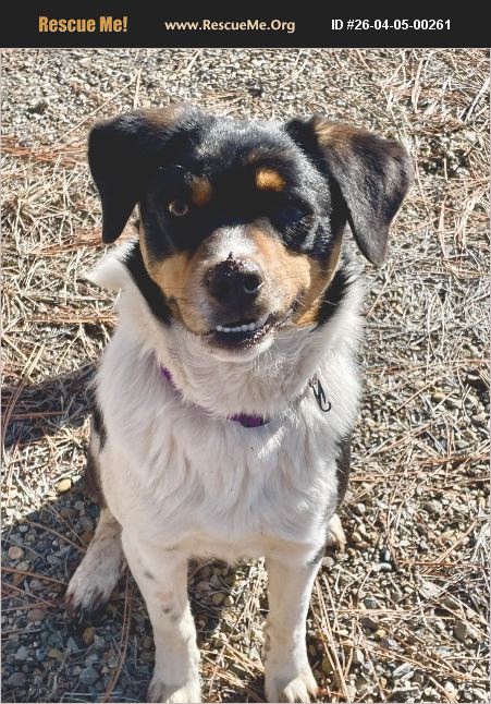 Nicolage is a happy sweet boy, friends with anyone. He'll be two in May, 2026, and he still has a lot of energy. He's about 37 pounds, and can jump like a pogo stick. His amusing little perma-grin is the result of an underbite and shifted lower jaw. That condition may be the result of a birth defect or hard hit to the left side of his face as a wee one. His teeth are healthy but a little misdirected on that side. This condition should not present big problems, except that grabbing things with his teeth may be harder as he gets older, and there are some things that are too hard to chew. Also teeth cleaning will be important. Otherwise he's healthy, very active, cuddly, eager to please, smart and entertaining. He has quickly learned domestic life hacks. He uses the dog door, is house trained, sits and waits for his food, and walks on a leash. He sticks pretty close on off leash walks. He happily jumps in the car and travels well. Nicolage can be in a roomy crate. He plays especially well with Boyle, another dog he was rescued with, who looks to be a relative. Boyle is also available for adoption. Together they would be perfect entertainers for each other while their human family is at work or school. He is located in Dolores, Co. and available through Blackhat Humane Society.