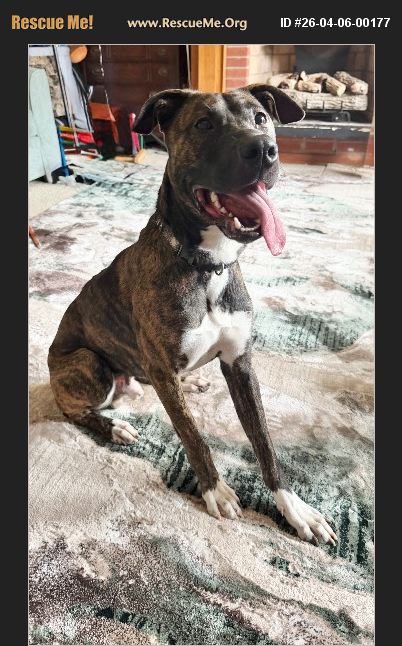 Brindle German Shepherd/Pit mix. Very affectionate and gets along with adults, children of any age and other animals (including cats). Has recently learned to get over fence. Does still chew if given the opportunity.