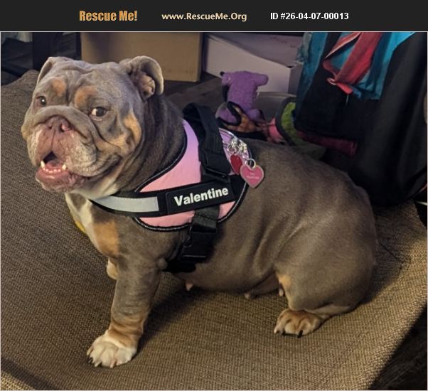 -Year-Old Female English Bulldog - Experienced Home Only We are seeking a loving, experienced English Bulldog home for our 3-year-old female due to urgent housing displacement caused by severe black mold. This decision is heartbreaking and made solely in her best interest. ��%BD'� Female, 3 years old ��%BD'� Relatively healthy with common Bulldog maintenance needs ��%BD'� Must be the only dog ��%BD'� Requires an experienced Bulldog owner familiar with breed-specific care ��%BD'� Indoor home only She is affectionate, expressive, and thrives with attention and structure. She would do best in a calm home with someone who understands the unique needs of English Bulldogs. We are committed to finding a knowledgeable, stable, and loving home. A rehoming fee will apply to ensure a serious and responsible placement. Please reach out with information about your Bulldog experience and the type of home you can provide. her instagram is valentinetheebulldog