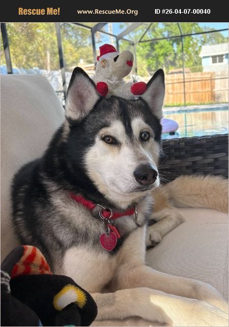 Hi, I'm Nanook! I'm a 4-year-old Husky with a heart full of love and absolutely zero chill when it comes to squirrels. I'm looking for my forever family - could that be you? Let me tell you a little about myself. I am a WORLD-CLASS cuddler. We're talking full-body snuggles, hugs, belly rubs on demand, and enough love to fill a whole house. I will roll over for belly rubs from basically anyone. I have no shame about this. I also love fetch and tug-o-war (fair warning: I play to WIN and I get loud about it - the barking and growling is just my game face, I promise) and watching birds and squirrels from the patio. And walks! I pull on the leash and squirrels/cats/other dogs make me VERY excited, but I'm working on it. I love all toys, but Lambchop is a personal favorite. And sleeping under the bed sometimes is just so cozy! I do well with kids and I love playing with other dogs! I can get a little jumpy and rowdy, so very young little ones should be supervised around me - not because I'm mean, just because I'm enthusiastic. I'm crate trained and eat well morning and evening. I'm mostly potty trained, though I do have the occasional indoor accident - still perfecting that part. I need a home with patience, playtime, a good patio to bird-watch from, and someone who gives really great belly rubs. I'll give you my whole heart in return. Interested in me? I'd sure love to meet you!