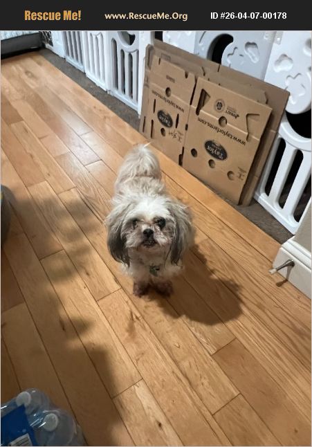 Approximately 12 years old and is a Lhasa Apso. He loves attention, sleeping in your lap or sleeping on the bed.
