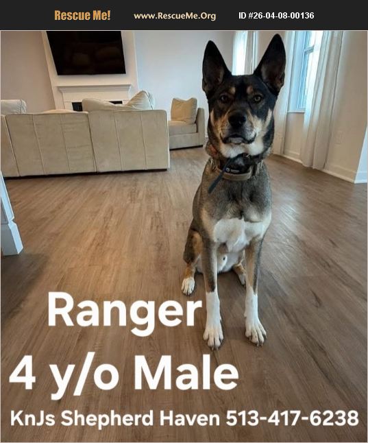 APPLY HERE: TO ADOPT, APPLY HERE: https://docs.google.com/forms/d/e/1FAIpQLSftfJ3aixd0OY8rysxPW0DL1p-swDSrE3k7E8tt_pu7dM2xHQ/viewform?usp=header�%81%A0 CONTACT ME: 513-417-6238 or EMAIL: [email protected] ***Trying to keep this amazing breed OUT of shelters, so please HELP me by SHARING this post and/or sending to anyone that may be interested in adopting. IT TAKES A VILLAGE, AND YOU ARE MINE Those of you that rescue/adopt these Shepherds in need instead of paying a Breeder, YOU are the REAL TRUE HEROES.***Thank you so much. DISCLAIMER: Every effort is made to provide the most accurate representation of each shepherd. While I disclose all information provided to me, KnJs Shepherd Haven cannot guarantee the completeness of a Shepherd's prior history. I provide all known details in good faith to ensure a successful match. [Case opened on 4/8/26]. URGENT!!! AT RISK FOR SURRENDER/EUTHANIZATION! PLEASE HELP!!! Liberty Township, OH (willing to drive up to 50 miles). 4 Y/O MALE SHEPHERD HUSKY (DOB: 11/15/2022). His name is 'Ranger' 3-6Q. Background: Has been with Current Shepherd Parent for 1.5 years after being adopted from a Rescue. UTD on shots WITH record. Fixed. NOT Good with YOUNG kids (older kids 16+ ONLY). Good with dogs. Good with cats. House trained. NOT Crate trained (kept in his own safe area when left alone). Any known medical issues?: None known. Abuse/Neglect/Trauma History?: Possible-shows anxiety and sensitivity, especially around children. ENERGY LEVEL: Medium. PREY DRIVE LEVEL: Medium. Weighs 65 lbs. Currently on Costco food. Good with car rides?: Yes. Socialized with: *people?: Yes. *dogs?: Yes. Good with meeting new people? (ALWAYS USE PROPER INTRODUCTION!): Yes, but can be excited and loud. Loves: Treats, food, running, snow, other dogs, exploring, hikes, cuddling, walks, playing with other dogs, sleeping in bed with his person, being near his person, and squeaky toys. *Intelligent and knows Basic Commands?: This breed is super intelligent. *Good Recall? (ALWAYS RETRAIN BEFORE ALLOWING OFF LEASH): Yes. *Good on a Leash?: No-needs work. *Lovable?: This breed is super lovable once they claim you as their person/family. *Eager and fast learner?: This breed is super fast learners when they are being committed to and worked with. Bite History?: NO, but has attempted to snap when overwhelmed (especially around loud or active children). NOTES FROM CURRENT SHEPHERD PARENT: ' Ranger is a very sweet and gentle dog! He is one of the smartest dogs I have ever been around! He loves to walk, hike, and explore! But he also loves to snuggle up in bed or on the couch. He is very emotionally tuned to his humans and can identify when they are happy or sad.' 'He is brilliant and can open any doors that are handles vs knobs! We have to have child locks on all ours! We have 4 kids and we really want to find the best home for Ranger!' Re Homing because�'�|: Ranger needs a home without young children. His anxiety around loud or active kids makes his current environment stressful, and he deserves a home where he can feel safe and relaxed. Ranger will be a great companion for the right person. Will thrive best�'�|?: In an active home with NO young children (16+ only). He would do great with someone who enjoys adventures, outdoor activities, and can give him structure and confidence. A calm but active environment will help him truly thrive. Comes with: Collar, leash, and food. RehomingFee $175 . If not on Facebook, please text me for more pics and full Profile. Serious Inquiries, please APPLY HERE: https://docs.google.com/forms/d/e/1FAIpQLSftfJ3aixd0OY8rysxPW0DL1p-swDSrE3k7E8tt_pu7dM2xHQ/viewform?usp=header�%81%A0 Thank you. Would you like to donate to a great cause? Any help is so much APPRECIATED and NEEDED. (We are NOT 501c) Help US to help THEM. Tysm #ItTakesAVillage LINKS TO DONATE: Amazon WishList: https://www.amazon.com/hz/wishlist/ls/1D1I1QOVAGR4H?ref_=wl_share�%81%A0 Walmart WishList: https://www.walmart.com/lists/shared/WL/6214b31a-4919-4d0a-868e-b75e6bace5e0�%81%A0 Venmo: https://venmo.com/code?user_id=2889571939385344656&created=1767974792�%81%A0 CashApp: https://cash.app/$KnJsShepherdHaven�%81%A0 PayPal: Keren Lainhart [email protected] 513-417-6238 KnJs Shepherd Haven 513-417-6238 [email protected] Text/Call: 513-417-6238. Please JOIN OUR GROUP: Go to the ALBUM 'Current Shepherds Needing Rehomed' and it will show all of the Shepherds that we are trying to find great homes for. Please message me if you are interested in any of them. Thank you https://www.facebook.com/groups/593859788742255/?ref=share�%81%A0