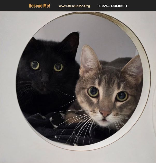 Ash and Tilley are a bonded pair. They were relinquished by their owners to a veterinary clinic because the husband has medical issues. Ash is very sweet and affectionate. Tilley is standoffish at first. It takes her awhile to warm up to people. I don't know how she would be with children. I think Ash would be fine with children. Ash is a gray tabby and Tilley is a black DSH. We would like them to be adopted together. The adoption fee is $100.