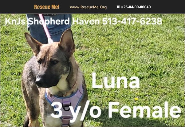 APPLY HERE: TO ADOPT, APPLY HERE: https://docs.google.com/forms/d/e/1FAIpQLSftfJ3aixd0OY8rysxPW0DL1p-swDSrE3k7E8tt_pu7dM2xHQ/viewform?usp=header�%81%A0 CONTACT ME: 513-417-6238 or EMAIL: [email protected] ***Trying to keep this amazing breed OUT of shelters, so please HELP me by SHARING this post and/or sending to anyone that may be interested in adopting. IT TAKES A VILLAGE, AND YOU ARE MINE. Those of you that rescue/adopt these Shepherds in need instead of paying a Breeder, YOU are the REAL TRUE HEROES.***Thank you so much. DISCLAIMER: Every effort is made to provide the most accurate representation of each shepherd. While I disclose all information provided to me, KnJs Shepherd Haven cannot guarantee the completeness of a Shepherd's prior history. I provide all known details in good faith to ensure a successful match. [Case opened on 4/9/26]. URGENT!!! Williamsburg, OH (willing to drive up to 50 miles). 3 Y/O FEMALE GSD (DOB: 6/1/23). Her name is 'Luna'. Background: Has been with Current Shepherd Parent for a few weeks after rescuing from a neighbor. UTD on shots WITH record. NOT Fixed. Good with kids. Good with dogs. Good with cats. House trained. Crate trained (but does NOT need-free roams well). Any known medical issues?: None known. Abuse/Neglect/Trauma History?: Yes-Previous Person reportedly would body slam her. ENERGY LEVEL: High. PREY DRIVE LEVEL: Low. Weighs 80 lbs. Currently on Iams + Fresh Pet food. Good with car rides?: Yes. Socialized with: *people?: Yes. *dogs?: Yes. Good with meeting new people? (ALWAYS USE PROPER INTRODUCTION!): Yes. Loves: Stuffed animals, affection, cuddling, walks, chilling on the couch, playing with kids, playing with dogs, balls, sleeping in bed with her person, being near her person, and squeaky toys. *Intelligent and knows Basic Commands?: This breed is super intelligent. *Good Recall? (ALWAYS RETRAIN BEFORE ALLOWING OFF LEASH): Yes. *Good on a Leash?: Yes. *Lovable?: This breed is super lovable once they claim you as their person/family. *Eager and fast learner?: This breed is super fast learners when they are being committed to and worked with. Bite History?: No. NOTES FROM CURRENT SHEPHERD PARENT: 'She is a very good girl, loves kids, and has been easy to retrain on some things. Loves affection.' Re Homing because�'�|: The Current Shepherd Parent is unable to keep her due to frequent travel. Luna will be a great companion for the right person. Will thrive best�'�|?: In a loving home, preferably WITH kids and a yard where she can play and burn off energy. She thrives on affection and being close to her people. Comes with: Collar and harness. RehomingFee $175 . If not on Facebook, please text me for more pics and full Profile. Serious Inquiries, please APPLY HERE: https://docs.google.com/forms/d/e/1FAIpQLSftfJ3aixd0OY8rysxPW0DL1p-swDSrE3k7E8tt_pu7dM2xHQ/viewform?usp=header�%81%A0 Thank you. Would you like to donate to a great cause? Any help is so much APPRECIATED and NEEDED. (We are NOT 501c) Help US to help THEM. Tysm. #ItTakesAVillage LINKS TO DONATE: Amazon WishList: https://www.amazon.com/hz/wishlist/ls/1D1I1QOVAGR4H?ref_=wl_share�%81%A0 Walmart WishList: https://www.walmart.com/lists/shared/WL/6214b31a-4919-4d0a-868e-b75e6bace5e0�%81%A0 Venmo: https://venmo.com/code?user_id=2889571939385344656&created=1767974792�%81%A0 CashApp: https://cash.app/$KnJsShepherdHaven�%81%A0 PayPal: Keren Lainhart [email protected] 513-417-6238 KnJs Shepherd Haven 513-417-6238 [email protected] Text/Call: 513-417-6238. Please JOIN OUR GROUP: Go to the ALBUM 'Current Shepherds Needing Rehomed' and it will show all of the Shepherds that we are trying to find great homes for. Please message me if you are interested in any of them. Thank you https://www.facebook.com/groups/593859788742255/?ref=share�%81%A0