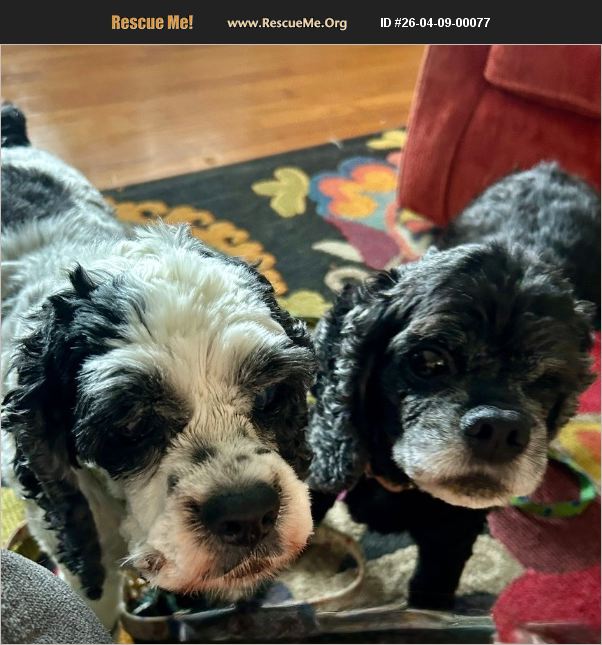 Hi there! I'm Cherry Pie, and this is my sister Spy - and where I go, she goes. We're a package deal, and honestly, we wouldn't have it any other way. We came to Florida Coastal Cocker Rescue after our beloved humans passed away, and we're hoping with all our hearts to find a new forever family to love. We're both senior cocker spaniel girls - I'm 11.5 and Spy is 12.5 - and we have so much love left to give. Now, I'll tell you a little about our situation. Spy has that adorable black and white fur and is blind, and I am a beautiful black cocker and have only one eye (my foster mom calls it my permawink - I think it's charming). We both have glaucoma and cataracts and take daily eye drops like total pros. Our hearing isn't what it used to be either, but honestly, we hear what matters - the treat bag crinkling and our humans calling our names. We're also working on slimming down just a little, because our best years are still ahead of us! Here's something people don't always realize about us - we light up when our people engage with us. Toys, treat puzzles, yard time, meeting new friends - we are IN. We're food motivated, take treats like the refined ladies we are, and we especially love a good treat toy that keeps our minds sharp. The more you give us, the more we give back! We also love being right next to our people - on the couch, at their feet, or ideally in the bed (but a cozy dog bed works too, we're flexible). We're housebroken, sleep through the night, love car rides, and are total angels at the groomer. We're good with other dogs and cats and we think we'd do calm, older children too. Oh, and a few things you should know about us that will make you smile - Spy lets out the most adorable little muffled 'woof' every now and then, and when I get excited? I hop. Like a bunny. You're welcome. Because of our vision, leash walks are still a work in progress - but we LOVE being outside, meeting people who fawn over us (as they should), and sniffing around a yard. A securely fenced yard would be the dream. If you're looking for two gentle, loving souls who just want to spend their golden years cherished and close to their people - we are YOUR girls. Please apply to adopt us through our website, www.floridacockerrescue.org Adoption fee for both: $425