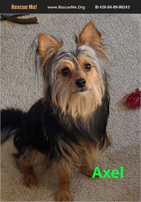 Axel, 1 yr old male Yorkie, 11 pounds, mostly potty trained, needing a fenced yard because he loves to run and play.