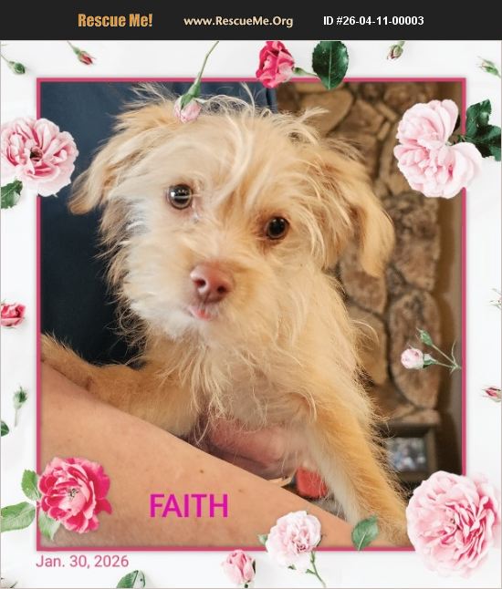 Faith was born on October 11, 2025. She is a beautiful cream color with a pink nose and soulful brown eyes. Faith was just recently spayed, is current on her shots, has been wormed and is Microchipped. She loves to play with her squeaky toys and her sister Mercy who is also waiting for her forever home. Faith is very loving and is doing well on her crate training.