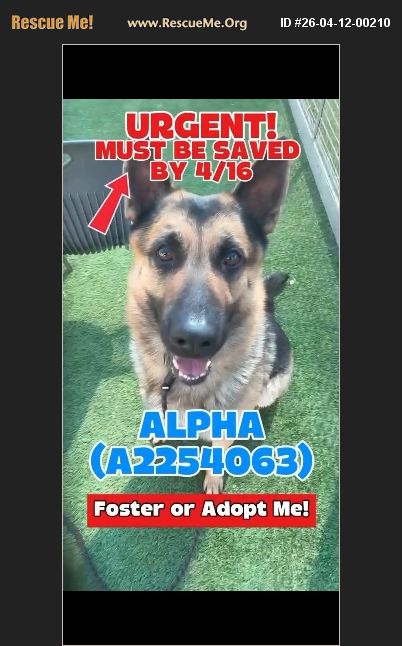 ALPHA, A2254063 - NEUTERED MALE, BROWN GERMAN SHEPHERD DOG. Shelter: EAST VALLEY Age: 1 YR, 6 MOS Weight: 80 LBS Scheduled Euthanasia Date: 04/17/2026. This animal has been at the shelter since 01/31/2026 and on this list since 04/10/2026. Reason for euthanasia: selective with other dogs. Would be best as the only dog in home. Last day to take animal:04/16/26 Scheduled euthanasia date:04/17/26 If animal is available for New Hope, adoption, foster.