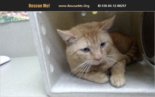 I am described as a male, orange tabby Domestic Shorthair. My age is unknown. I have been at the shelter since Apr 11, 2026 and I may be available for adoption on Apr 18, 2026 at 11:24AM.