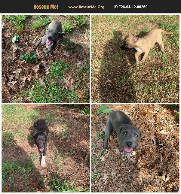 Pit mixes. The mom is a brindle (believed to be full pit). Very energetic and playful pups. They have grown up playing with a kitten, but they haven gotten bigger and the play is a bit rough for the kitten now, because they gang up on it. 2 boys and 2 girls.