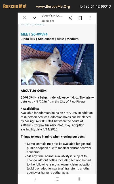 Location:Seaaca in Downey Ca. He came in with a brother labeled as a puppy Jindo mix