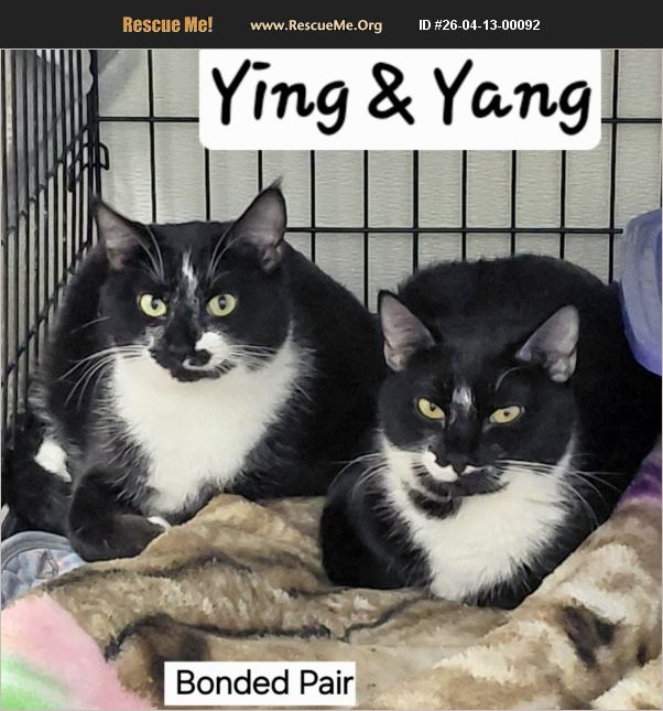 Ying and Yang are an extremely bonded pair of sisters, and must stay together always. They do have slight food issues and are doing well on Purina Proplan EN Gastroenteric. They coexist with other cats well, but must be kept separate due to their special food. They are also extremely timid and it takes quite awhile for them to adjust to new surroundings. Needs a quite patient home.