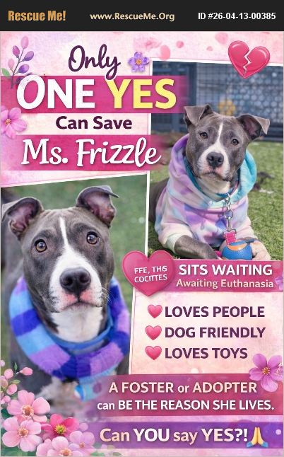 EUTH COMMAND!!! SOS!!! MS. FRIZZLE - HER TIME IS UP This post is going out with a PRAYER because this sweet girl does not have time left. LOOK AT HER. Those soulful soft eyes that gentle face. This is a dog who loves people who wants to connect who still has so much life in her. And yet she is sitting in the back waiting awaiting euthanasia. FOUND AS A STRAY Can you imagine how confusing that must be? One day you're with your loving family the next you're locked in a cold, loud shelter so confused and surrounded by fear stress and the smell of death all around you. And still she stays loose, wiggly, social she walks happily by her handler she greets other dogs nicely she seeks love even now That is who she is. That is her HEART. But the shelter is going to snuff out that light any moment now. 6 YEARS OLD - 44 LBS DOG FRIENDLY AFFECTIONATE & PEOPLE-ORIENTED LOVES TOYS & TREATS (SO TRAINABLE!) STRESSED BUT STILL TRYING She's not broken. She's just overwhelmed. I am begging ONE YES can save her life. A foster. An adopter. Anyone willing to give her a chance Do something extraordinary today. Be the reason she lives. They have already taken so many this week. PLEASE DON'T LET MS. FRIZZLE BE NEXT. PLEDGE IF YOU CAN - help a rescue say YES SHARE - her life depends on being seen FOSTER / ADOPT - save her Ms. Frizzle is still holding on waiting for YOU. We have tonight to find her hero !!! If you can help please text Kat , you have to see her video how she shines , so adorable , sent me a text , will send it 516 457-3678 ASAP. Can be transported to other states PA , NJ, CT etc