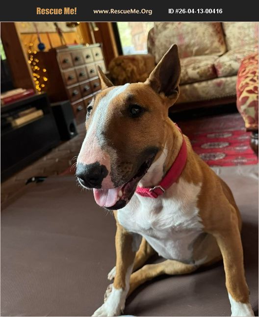 Rosey is a 2�%BD-year-old female Bull Terrier who is spayed, up to date on vaccinations, and in good health. She came to rescue as part of a group of dogs removed from a backyard breeding situation, where she had little to no human interaction and lived in an outdoor concrete run. Despite that start, Rosey has made incredible progress and continues to grow more confident every day. She is a loving, affectionate girl who bonds closely with her people and thrives on attention and interaction. Rosey is a typical young Bull Terrier-playful, energetic, and full of personality. She enjoys games, being involved in daily life, and spending time both indoors and outdoors. She will need regular mental and physical exercise, as well as a securely fenced yard. Rosey is not a fit for a multi-dog home. She is dog selective and does best as the only dog, where she can feel secure and not have to navigate the stress of other dogs. She is also not recommended for homes with cats. She has done well with children. Rosey will do best with an adopter who understands the Bull Terrier breed and can provide structure, consistency, and continued guidance as she settles into her forever home. She is a resilient, joyful dog who is ready for a fresh start with a family of her own. Out of State Transport is Available! Please email for an application to adopt today!