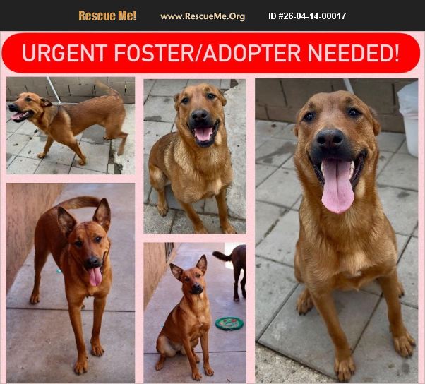 URGENT�'�|PLEASE HELP SAVE SADIE! Sadie's world is about to be turned upside down. Her family is moving and they can't take her with them�'�| and we are desperately trying to keep her out of a kill shelter. She deserves so much more than that. Meet Sadie: Belgian Malinois / Carolina Dog mix. Just 1 year old. Stunning, shiny auburn coat�'�|absolutely beautiful girl. Sadie is everything you could want in a companion: Sweet, loving, and full of life. Gets along with other dogs (just needs a proper introduction). Good with cats�'�|curious but gentle. Wonderful with kids�'�|currently lives with a 1-year-old. Loves to play, especially with squeaky toys. Enjoys car rides. Smart and eager to learn. She already knows 'sit' and 'lay down'�'�|she just gets so excited to be with you that sometimes she needs a little reminder. Sadie is truly a HAPPY girl. She loves affection, kisses, and just being by your side. We cannot let her end up in a shelter where her story could end too soon. Please contact Jennifer with Pumpkin Pawz Rescue at (714) 366-8170 (text is best). If you can't adopt, PLEASE SHARE. That one share could reach the person who saves her life.Let's find Sadie the loving home she deserves.