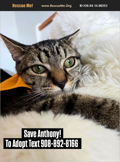 URGENT! SAVE ANTHONY! Shy & sweet Homeless Shelter Cat Urgently needs an Adopter to Save Him! To Adopt please TEXT MESSAGE 908-892-8166