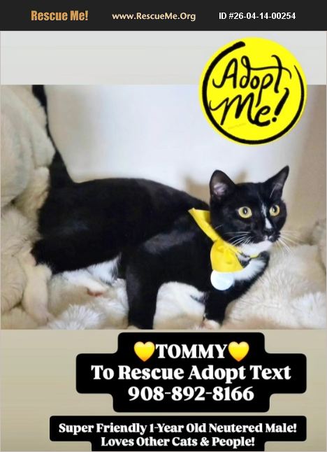 URGENT! SAVE TOMMY! Playful & affectionate Homeless Shelter Cat Urgently needs an Adopter to Save Him! To Adopt please TEXT MESSAGE 908-892-8166