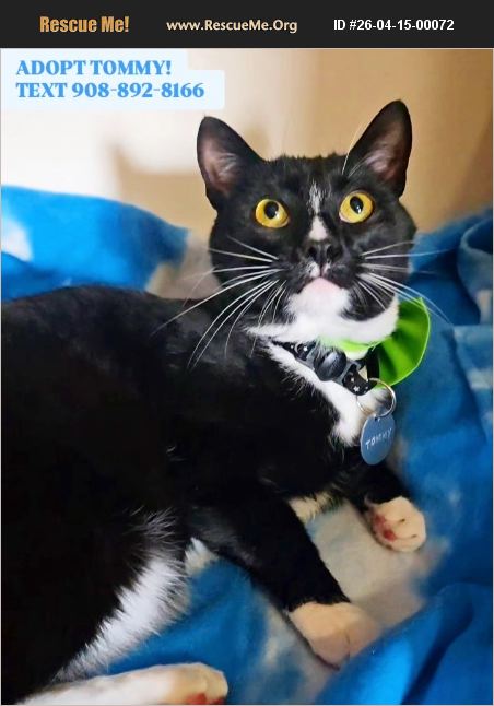 URGENT! SAVE TOMMY! Homeless Shelter Cat now Urgently Needs an Adopter to Save Him! To ADOPT TEXT MESSAGE 908-892-8166